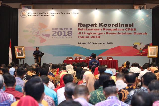 “Proporsi terbesar formasi CPNS tahun ini adalah untuk jabatan-jabatan teknis dan spesialis yang saat ini masih kurang, antara lain tenaga pendidikan, tenaga kesehatan, serta tenaga yang memiliki kualifikasi teknis di bidang infrastruktur sesuai dengan program Nawacita,” ujar Menteri Pendayagunaan Aparatur Negara dan Reformasi Birokrasi (PANRB), Syafruddin, pada acara Rapat Koordinasi Penyampaian Rincian Penetapan Kebutuhan Formasi PNS dan Persiapan Pengadaan CPNS Tahun 2018 di Komplek Bidakara, Jakarta, Kamis (06/09).