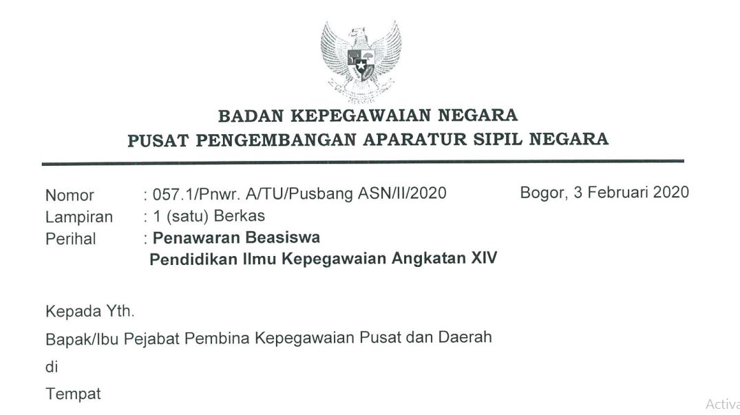 Penawaran Beasiswa Pendidikan Ilmu Kepegawaian Angkatan XIV