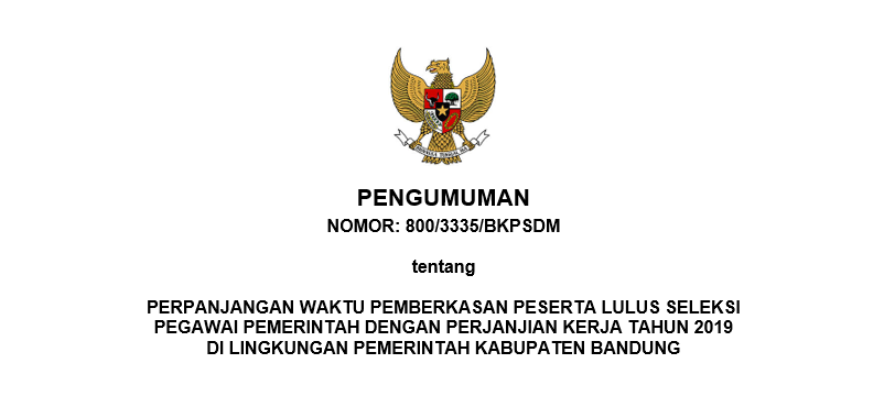 Menindaklanjuti surat Bupati Bandung nomor: 800/3230/BKPSDM tanggal 15 Desember 2020 perihal: Kelulusan Peserta Seleksi Pegawai Pemerintah dengan Perjanjian Kerja Tahun 2019 di Lingkungan Pemerintah Kabupaten Bandung