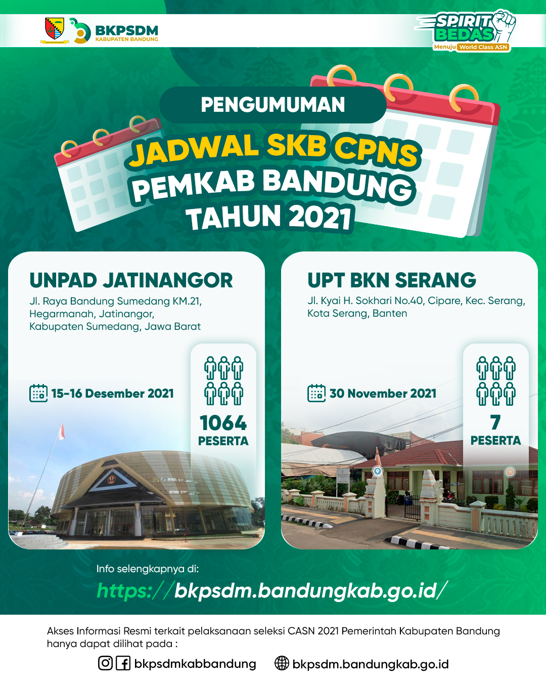 Berdasarkan surat Kepala Kantor Regional III BKN Bandung nomor: 1443/1/KR.III/VIII/2021 tanggal 22 November 2021 perihal Penyampaian Jadwal SKB CPNS Tahun 2021 Tahap 2 yang disampaikan kepada Instansi pada tanggal 22 September 2021, dengan ini disampaikan hal-hal sebagai berikut: