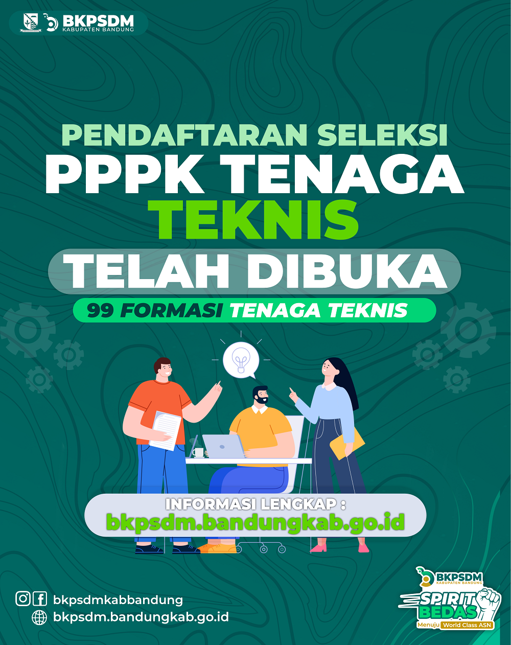 Berdasarkan pengumuman Bupati Bandung Nomor: 810/3765/BKPSDM/2022 tanggal 31 Oktober 2022 tentang Pengadaan Pegawai Pemerintah dengan Perjanjian Kerja di Lingkungan Pemerintah Kabupaten Bandung Tahun Anggaran 2022 dan menindaklanjuti surat Pelaksana Tugas (Plt) Kepala Badan Kepegawaian Negara Republik Indonesia nomor: 43066/B-KS.04.01/SD/K/2022 tanggal 19 Desember 2022 bahwa jadwal pelaksanaan seleksi pengadaan PPPK Tenaga Teknis Tahun 2022 sebagai acuan dalam melaksanakan kegiatan penerimaan PPPK Tenaga Teknis Tahun 2022. Dalam seleksi Pengadaan Pegawai Pemerintah dengan Perjanjian Kerja di Kabupaten Bandung Tahun Anggaran 2022