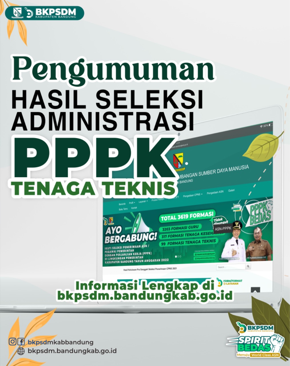 Hasil Seleksi Administrasi Pengadaan PPPK Tenaga Teknis Di Lingkungan Pemerintah Kabupaten Bandung Tahun 2022