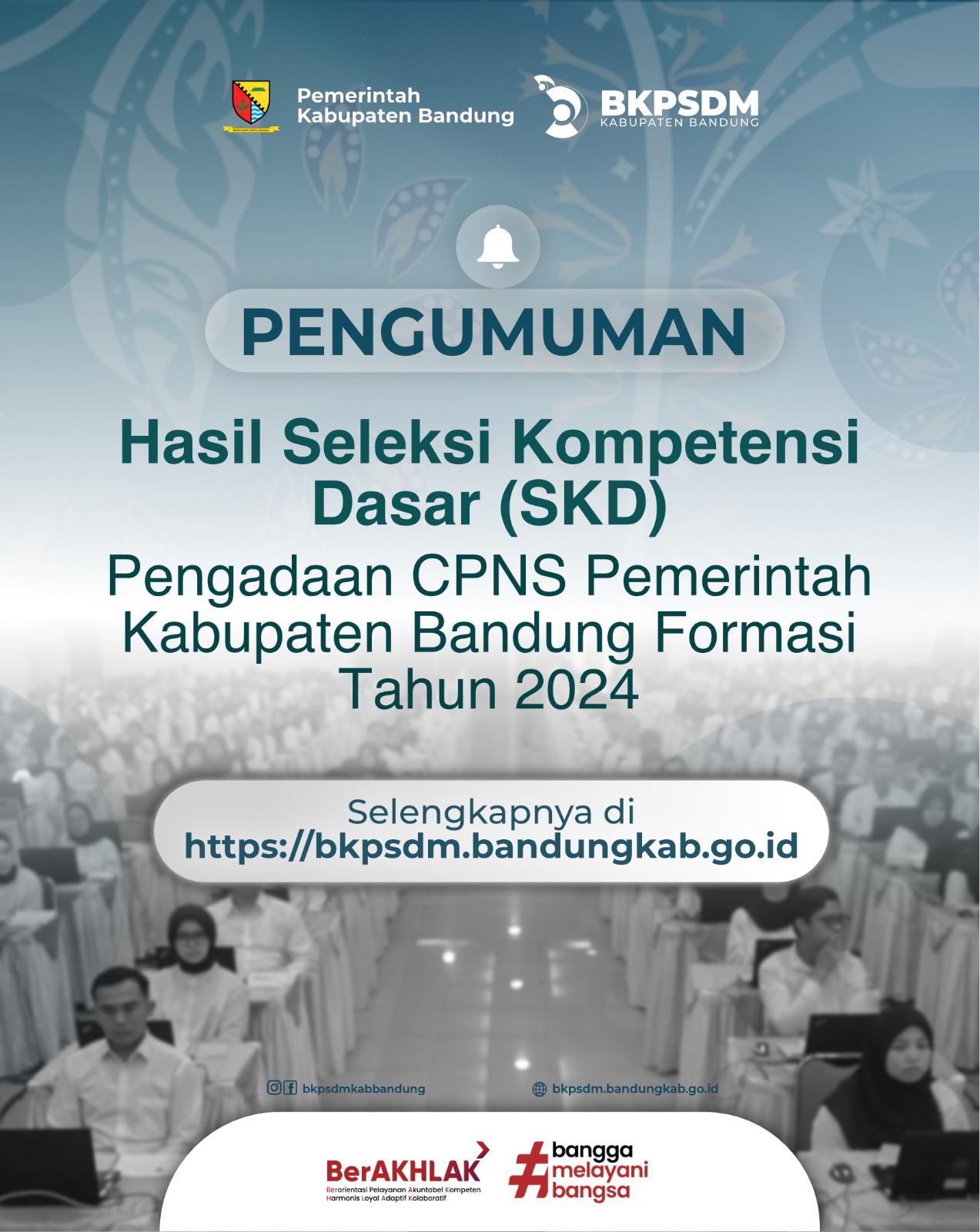 Pengumuman Hasil Seleksi Kompetensi Dasar (SKD) Pegawai Negeri Sipil Dengan Sistem Tes Berbasis Komputer (Computer Assisted Test) Di Lingkungan Pemerintah Kabupaten Bandung Tahun 2024